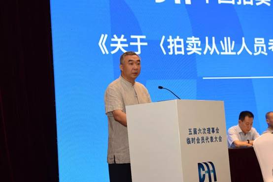 7月29日,中國(guó)拍賣行業(yè)協(xié)會(huì)五屆六次理事會(huì)在北京召開(kāi)。中拍協(xié)名譽(yù)會(huì)長(zhǎng)張延華、會(huì)長(zhǎng)余平、常務(wù)副會(huì)長(zhǎng)黃小堅(jiān)、副會(huì)長(zhǎng)徐勉之、雷敏、苗華甫、王中明、李偉、張力、法勇生、陳志坤、祁志峰、韓濤,秘書長(zhǎng)李衛(wèi)東,原中拍協(xié)副會(huì)長(zhǎng)劉浚年、馬巧嘏等領(lǐng)導(dǎo)在主席臺(tái)就坐。中拍協(xié)副會(huì)長(zhǎng)徐勉之主持。