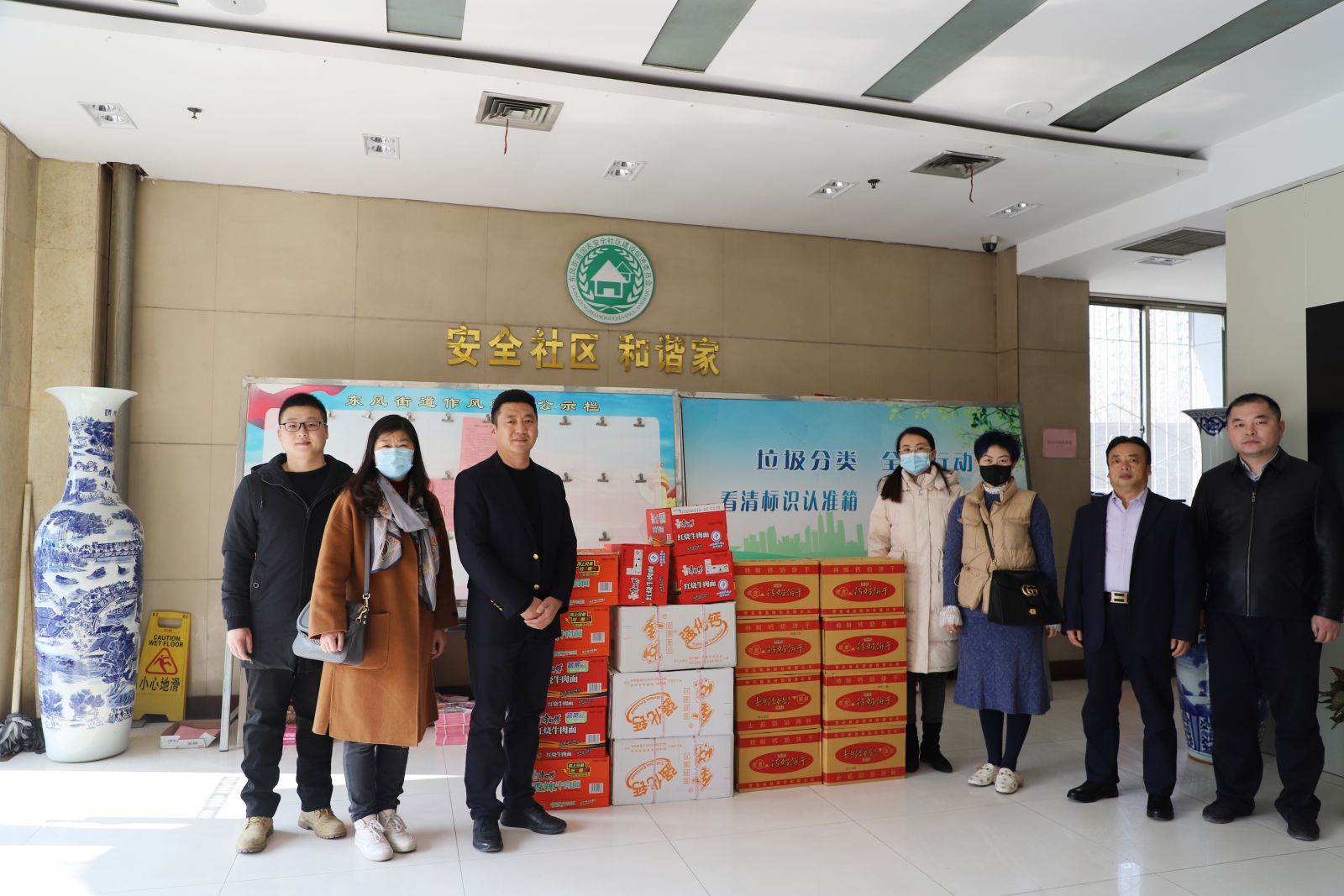 1月31日,得知公司所在地街道辦事處工作人員春節期間24小時晝夜無休地開展人員排查、社區消毒、防疫檢查等一線工作,金諾國拍第一時間采購了一批營養麥片、鈣奶餅干、方便面等物資,由金諾國拍總經理位琳及所隸屬的沃爾德集團代表將物資送至東風街道辦事處,為街道、社區參與防疫的工作人員送去溫暖。