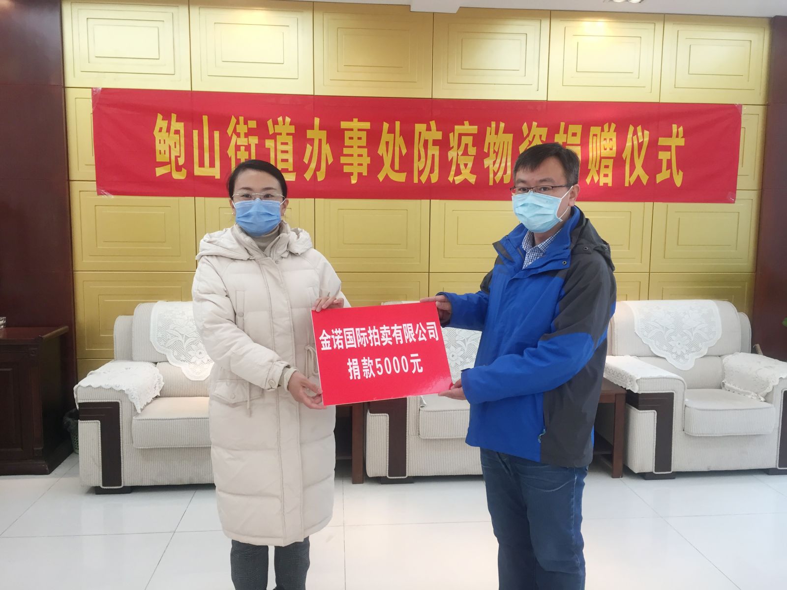 2月6日,積極響應中國拍賣行業協會《中國拍賣人,行動起來,支援抗疫》倡議書,金諾國拍董事長商雪梅、總經理位琳前往歷城區鮑山辦事處,向不辭辛苦戰斗在抗疫情一線的領導和工作人員表示敬意和問候,并捐款5000元表示慰問。