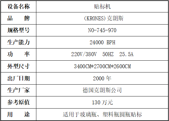 標的三:貼標機,起拍價 135000元(不含稅),標的設有保留價,競買保證金3萬元。已拆機,設備完好。
