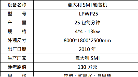 標的五:意大利SMI箱包機,起拍價:315000元(不含稅),標的設有保留價,競買保證金6萬元。已拆機,設備完好。