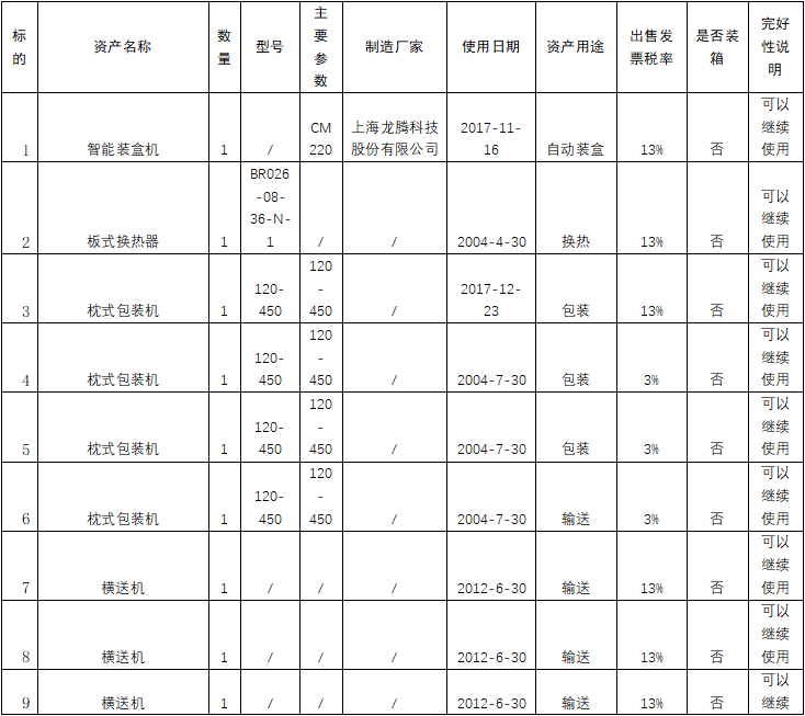 【競價公告】2月15日智能裝盒機、枕式包裝機、橫送機、板式換熱器、分配盤、熱轉碼打印機等競價會