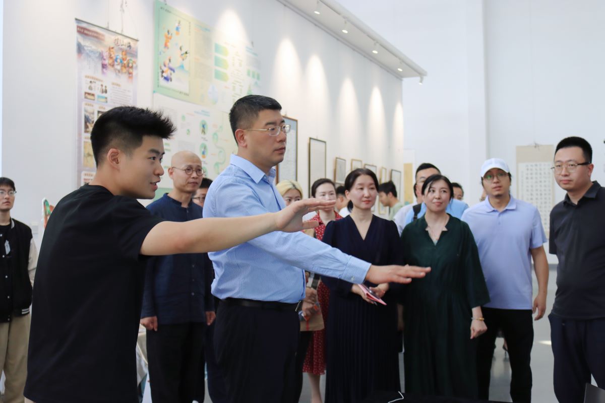 劉旻航代表學(xué)校對(duì)畢業(yè)展的舉行表示祝賀,向出席活動(dòng)的合作共建單位表示熱烈歡迎,對(duì)藝術(shù)學(xué)院的相關(guān)工作表示充分肯定。他講到,藝術(shù)學(xué)院堅(jiān)持特色辦學(xué),三個(gè)本科專業(yè)全部獲評(píng)省級(jí)一流本科建設(shè)專業(yè),改造完成并遷入新院址,辦學(xué)條件與辦學(xué)水平不斷提升,服務(wù)學(xué)校和社會(huì)發(fā)展的能力不斷增強(qiáng),海岱美術(shù)館開館以來,陸續(xù)承接校內(nèi)外展覽活動(dòng),在文化育人、教學(xué)、會(huì)展、陳列、實(shí)踐、對(duì)外交流等方面的作用日益凸顯;學(xué)院堅(jiān)持OBE教育理念,積極推進(jìn)教學(xué)改革,修訂完善培養(yǎng)方案和教學(xué)大綱,全面推廣課程工作室制,開設(shè)的實(shí)景寫生、作品拍賣、藝術(shù)調(diào)研、專業(yè)實(shí)習(xí)、課程國際化等實(shí)踐類課程獨(dú)具特色,全面提升了學(xué)生的實(shí)踐能力;2023年,學(xué)院作為核心單位獲批山東省普通本科高校重點(diǎn)領(lǐng)域教學(xué)改革試點(diǎn)項(xiàng)目“111計(jì)劃”立項(xiàng),“藝術(shù)與科技實(shí)習(xí)基地”獲批山東省普通高等學(xué)校示范性實(shí)習(xí)(實(shí)訓(xùn))基地,進(jìn)一步拓展了實(shí)踐教學(xué)平臺(tái);希望藝術(shù)學(xué)院加強(qiáng)與社會(huì)組織和企事業(yè)單位的合作共建,為培養(yǎng)全面發(fā)展的藝術(shù)類實(shí)踐人才貢獻(xiàn)力量。