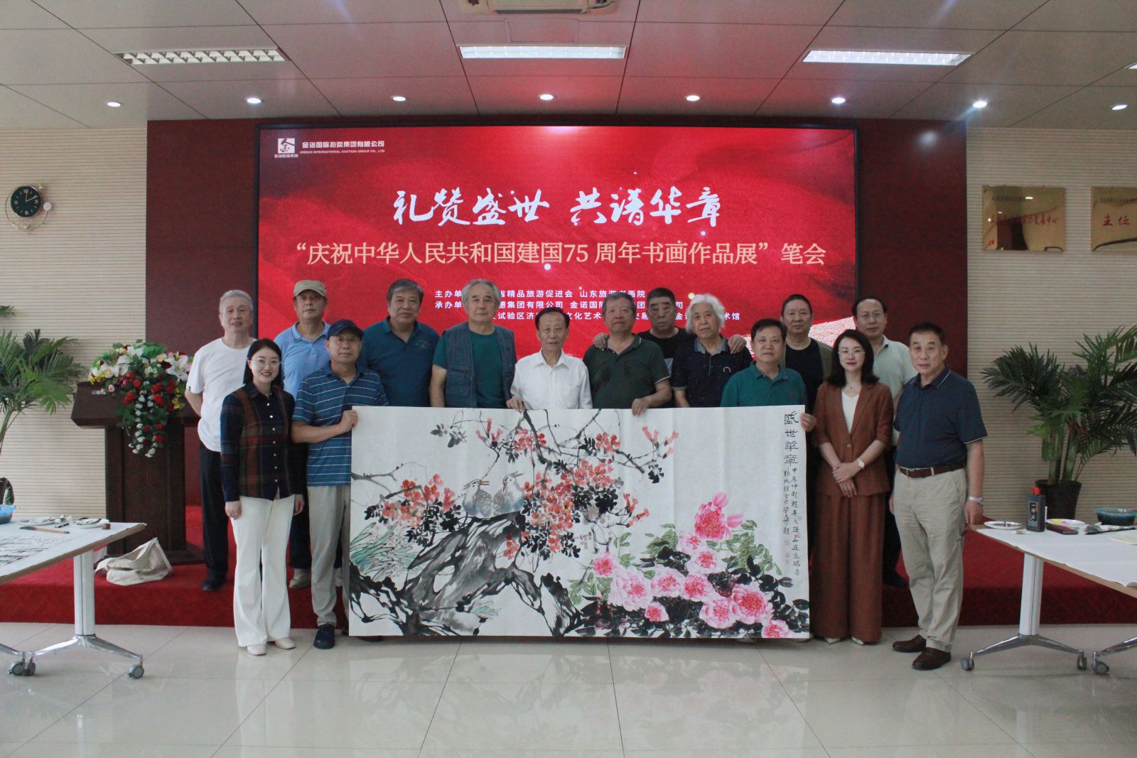 七十五載風雨兼程,七十五載砥礪前行,為慶祝中華人民共和國75周年華誕,9月18日,山東省精品旅游促會在省旅促會副會長單位沃爾德集團展開了一場精彩書畫筆會。活動由省委原副秘書長、山東省精品旅游促進會會長杜文彬帶隊,著名書畫藝術家梁文博、劉玉泉、蕭維永、戴月、韓英偉、趙英水、馬林春、韓新濰、劉勝軍、郭執銓、孫華進、董廷新等參加,省旅促會副會長、沃爾德集團董事長林擘,沃爾德集團總裁、金諾國拍集團董事長商雪梅,金諾國拍集團總裁位琳陪同。