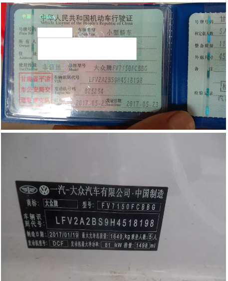 2、存放于甘肅省平涼市車架號為LFV2A2BS9H4518198,發(fā)動機號為025254大眾牌車輛一臺。